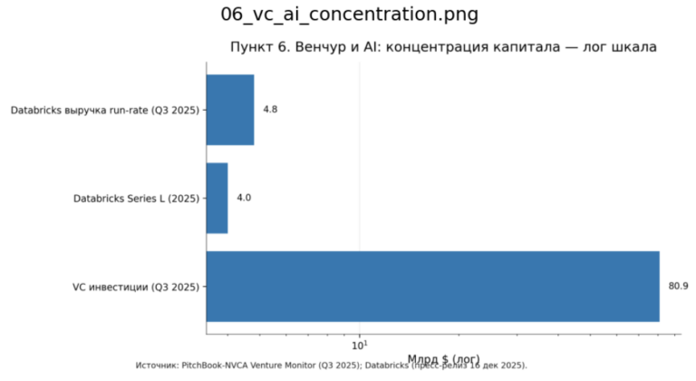 AI-инвестиции и концентрация капитала: венчур и публичный рынок живут вокруг инфраструктуры и лидеров. nvca.org+1