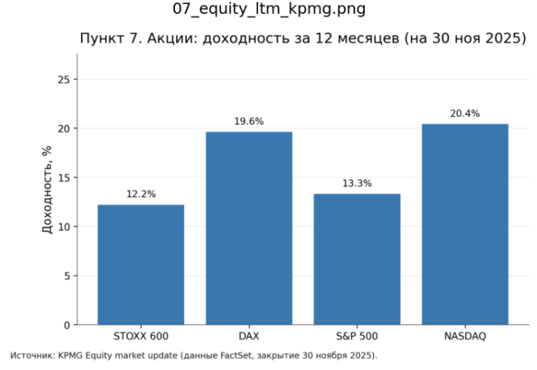 Смысл: 2025 закрепил доминирование “мегатем” (AI/тех-инфраструктура) и подтвердил: рынок может расти даже при неидеальной макро-картине, если ожидает дальнейшее смягчение ставок и видит прибыль/маржу у лидеров.