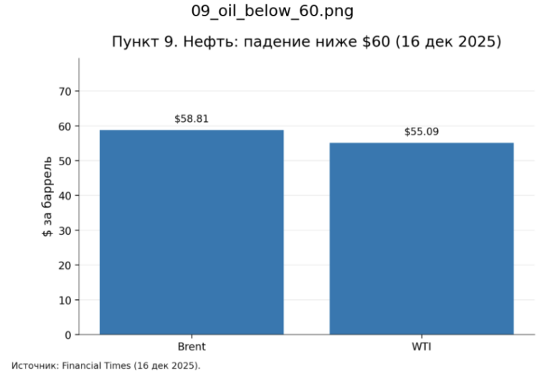 Нефть в конце года проваливалась ниже $60 Brent на фоне ожиданий вокруг возможной деэскалации/перестройки потоков и при разговорах о профиците предложения. Financial Times