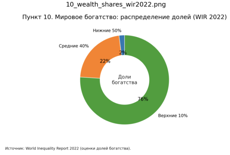World Inequality Report 2026 (WID): топ-0,001% (менее ~60 тыс. человек) владеют в 3 раза большим богатством, чем нижняя половина человечества. WID – World Inequality Database