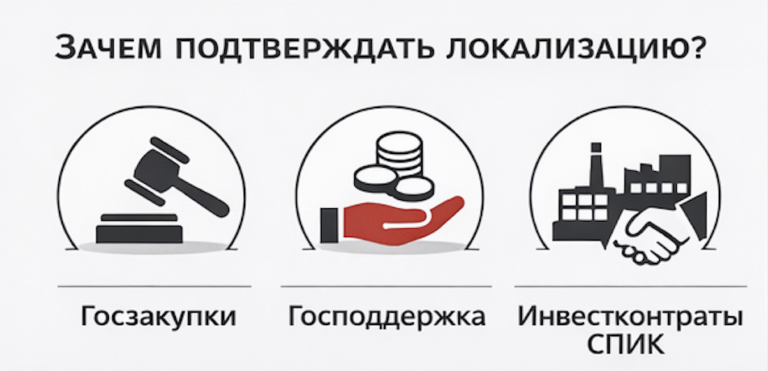Подтверждённая локализация — это «пропуск» в экосистему поддержки: субсидии, льготные программы, региональные преференции, иногда — связка с требованиями по реестрам и «приоритетам» при отборе.