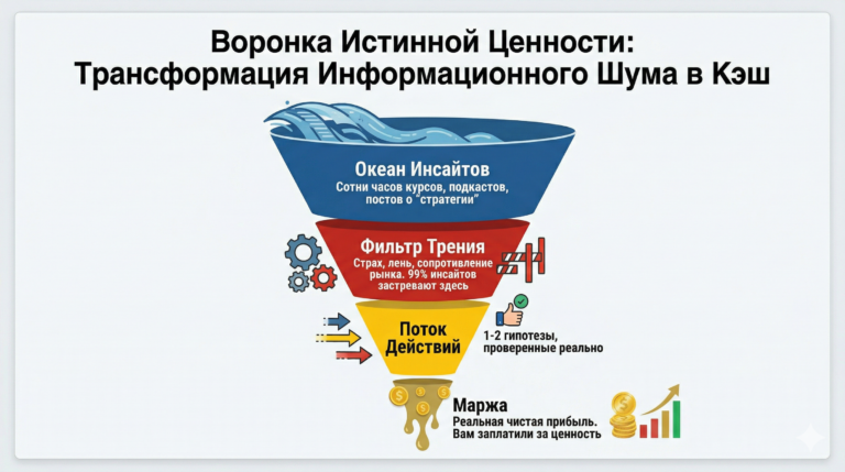 Настоящий заработок — это всегда трение. Это конфликт интересов, преодоление сопротивления рынка и умение забирать добавленную стоимость там, где другие видят только хаос. Чтобы начать зарабатывать, нужно совершить болезненный переход: от «изучения бизнеса» к «эксплуатации рынка».