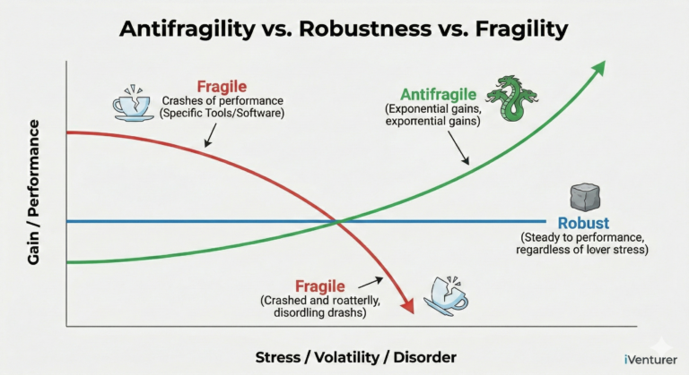 Логика: Это визуализация ключевой концепции Нассима Талеба, упомянутой в анонсе. Статья призывает учить сына не просто «выживать» (быть неуязвимым/robust), а «процветать от хаоса» (быть антихрупким). График показывает разницу: Хрупкое ломается, Неуязвимое не меняется, Антихрупкое улучшается при возрастании стресса (волатильности, ошибок). Это главный навык будущего.
